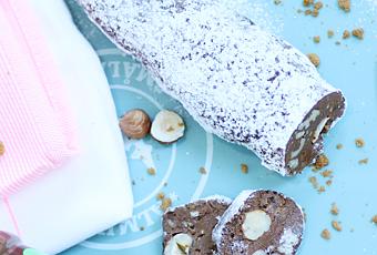 Répartir ensuite le mélange en forme de boudin sur du film alimentaire préalablement saupoudré de cacao.