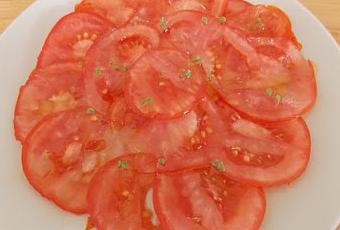 J'ai coupé en fines tranches mes tomates et je les ai rangées dans une assiette.
