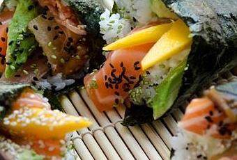Le Temaki c'est la version 'minute' et grand format du sushi-maki. Une fois les ingrédients de base préparés, chacun peut farcir et rouler son temaki avec la farce de son choix! Idéal pour un dîner original. J'aime aussi le fait qu'en ne trainant pas, la feuille d'algue nori reste bien croquante et croustillante!