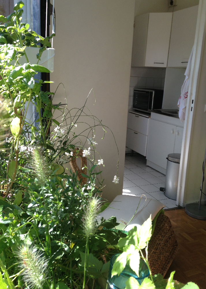 Une dernière photo ? Parce que ma passion du jardin ne se cantonne pas qu'au salon... Voilà une photo que j'ai prise depuis mon lit.. Fougère Capillaire (Adiantum fragrans), Asparagus setaceus, ciboulette et le rosier liane Banksiae lutea que j'ai planté ce printemps.. J'adore. Quel extraordinaire contexte pour jouer de la harpe et se réveiller chaque matin.. Enjoy !