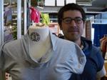 Lui est styliste, elle photographe. La mode de Juanpablo (photo) et Johanna mérite une démonstration: un pliage inattendu et le T-shirt est réinventé. Le blog de Teori co. (en lien dans le titre) détaille en dessins ce que je ne peux vous montrer en vidéo. "Inventer, expérimenter" dit-il pour résumer leur démarche qui demande aussi un regard perçant. Le graphisme fait dans le trompe-l'oeil. Ainsi un corps de femme miniaturisé et répété créé un motif digne des azulejos portugais. Ailleurs, on reconnaît la Vénus de Boticelli, stylisée et agencée tête-bêche. Sur les étiquettes de l'été 2008, on peut lire des textes très philosophiques de l'écrivain espagnol Ramon Gomez de la Serna. L'humour s'exprime jusque dans l'agencement du minuscule stand où des tuyaux en pvc servent de portants. Le projet est néanmoins bien sérieux : le coton bio importé des Etats-Unis est travaillé au Mexique par les femmes de l'atelier "Dignity & Justice" de Piedras Negras. A surveiller de près.