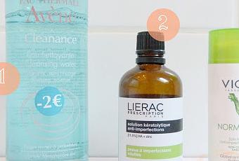 3 ► Après m'être rincé le visage et séché sans frotter comme une cinglée pour éviter d'avoir une peau version tomate bien mûre, je passe un coup d'Eau Nettoyante toujours de la gamme Cleanance d'Avène. C'est frais, ça peut faire office de tonique, et ca nettoie le reste des cochonneries qui peuvent trainer. Et comme son cousin le Gel, non comédogène & hypoallergénique .