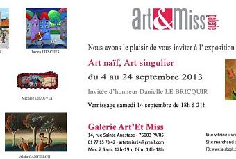 septembre voit se confronter deux univers, l'art naïf et l'art singulier, l'un représenté par Heidi SCHMERZER, Iwona LIFSCHES, Danièle LE BRICQUIR, Gislaine RATIER et Michèle CHOVET, ayant une