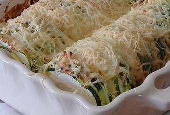 Égoutter les courgettes, les disposer joliment dans un plat à gratin.