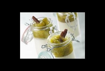 Un fois la crème prise, repartir la compotée de prune dessus, couper les bâtons de cannelle en 3 et planter dans la compotée pour décorer.