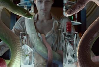 « Smirnoff Apple Bite ». Nouvelle signature pour Smirnoff et nouveau film hypnotique qui penche légèrement vers du David Lynch. Cette nouvelle boisson mêle la vodka « Smirnoff No.21″ avec de l’arôme naturel de cannelle et des paillettes comestibles en or 23 carats. Prix de la bouteille 21.95 euros.