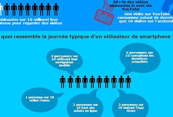 Grâce à cette infographie, nous pouvons vérifier que les utilisateurs de smartphones et de tablettes utilisent principalement leurs appareils pour le divertissement. Les mobinautes regardent des vidéos (2 utilisateurs sur 10) dont la majorité est visionnée sur Youtube (à plus de 80%), ils écoutent de la musique (31% pour les possesseurs de smartphones et 21% pour ceux utilisant une tablette), ou encore se renseignent sur les actualités (environ 6 personnes sur 10).