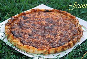 Mélanger 1 œuf et la fécule dans un saladier. Incorporez les œufs 1 par 1. Versez la crème et le lait en fouettant doucement. Poivrez et ajoutez 2 pincées de muscade râpée. Salez un peu. Incorporez le comté et les lardons.
