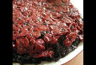 Un gâteau sans produits laitiers et sans oeuf chocolat, qui est magnifique quand basculé à révéler des tas de cerises rouges Vous pouvez utiliser deux boîtes rondes 23cm à la place, si vous le souhaitez - il suffit de regarder si vous n'avez pas trop cuire le gâteau.ingrédients