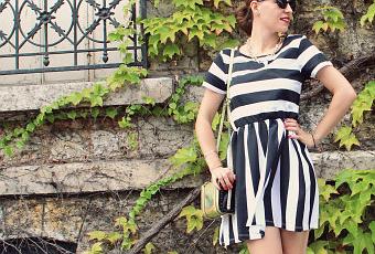 Au programme, chignon bas (complètement adopté par mes cheveux), robe rayée, escarpins silver et lunettes style vintage.