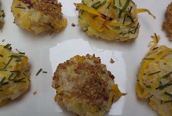1 personne 10 ppLa saison des courgettes battant son plein, et me restant un reste de riz, j'ai préparé ces petites boulettes bien moelleuses.