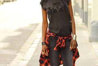 Pour moi qui ai un style rock dominant, c'est nickel car je n'aurais pas à me ruiner pour la suivre étant donné que la majorité de ma garde-robe est read. J'ai juste shoppé 2-3 pièces phares dont la fameuse chemise à carreaux (rouge et noire de préférence -sinon ça fait western). Portée à la taille ou sur un teesh' elle suffit à grung-iser n'importe quel vêtement auquel elle est associée (jeans, jupe, short, ...)