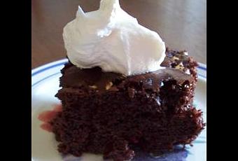 Cuire au four préchauffé pendant 30 minutes, ou jusqu'à ce qu'un cure-dent inséré au centre du gâteau en ressorte propre. Laisser refroidir Servir avec la garniture fouettée, si désiré.