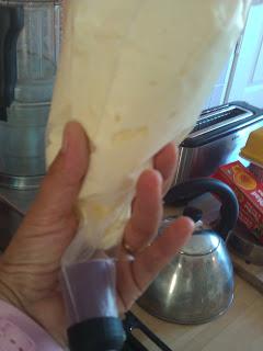 J'ai donc remis cette crème au frais, et au bout d'un moment j'ai fini par en garnir le gâteau, ce n'était pas tout mais cela faisait déjà 2 heures que j'étais en cuisine.