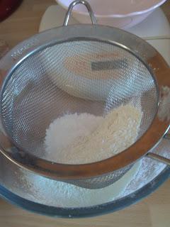 - pendant ce temps là tamiser les poudres à savoir la farine, et la fécule de pomme de terre
