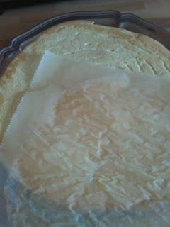 - quand c'est cuit, laisser le biscuit refroidir et une fois froid, retournez alors le biscuit sur un plat pour en retirer le papier