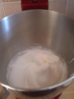 - et à l'aide d'un robot pâtissier montez ces blancs bien ferme avec le sucre en poudre