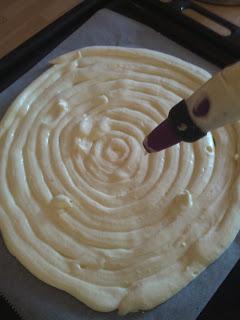 - sur une feuille de papier sulfurisée, étalez la crème de façon circulaire en commençant par le milieu de la plaque, sinon on va vite se retrouver coincé
