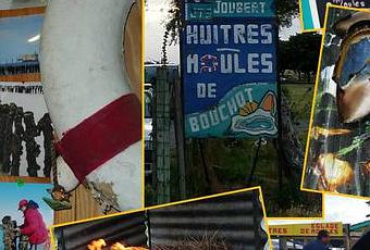 Direction la gargote de dégustation de Mr Joubert, producteur d'huitres et de moules sur l'Ile d'Oléron, qui perpétue la tradition culinaire de l'églade (ou éclade) de moules :