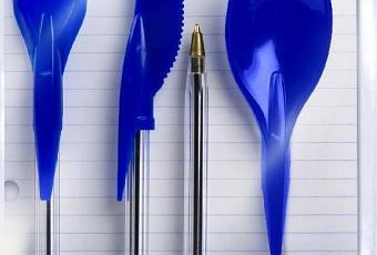 Ça vous est sûrement déjà arrivé d’acheter un déjeuner à emporter et de vous rendre compte après qu’il n’y avait pas de couverts en plastique pour le manger… Voici un kit ingénieux ! Les bouchons de ces stylos BIC classique sont en forme de cuillère, couteau et fourchette. Une manière d’avoir toujours sur vous des couverts quand vous déjeuner sur le pouce et très pratique puisqu’ils s’adaptent ensuite sur tous types de stylos bic.