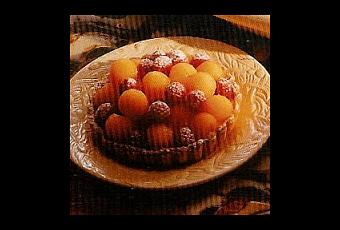 - Garnir chaque fond de tartelette de cette crème, Disposer les framboises et le melon découpé en billes à l'aide d'une cuillère parisienne. Saupoudrer de sucre glace au moment de servir.