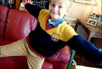 Je crois bien qu'Hugo est satisfait de la réalisation du pull qu'il avait lui-même dessiné.