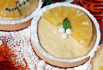 Mixez l'ananas égoutté (en réservant 3 tranches entières pour la déco) mélangez la compote à la crème . Versez sur les fonds précuits et décorez à votre goût, mettre une nuit au frais.