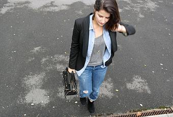 Veste Zara/top Monki/chemise homme Asos/jean Bershka/bottines Aldo/sac Rebecca MinkoffPour bien commencer la semaine, un look qui mêle fin d’été avec début de l'automne.