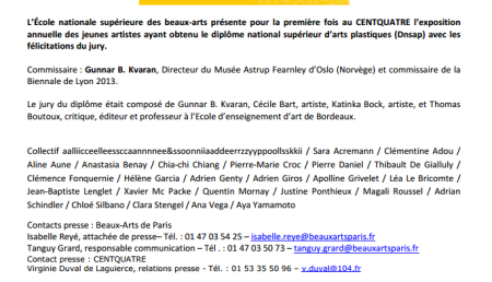 Ecole Nationale des Beaux Arts de Paris "Dépaysements" au 104
