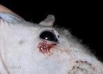 Aujourd’hui la paupière inférieure de mon Petit Chose était très enflée. Une grande croûte de nécrose la recouvrait. Estimant le moment était venu d’ouvrir l’abcès, je l’ai gratté et soulevé avec un ongle. Avec une lame, aussi près de l’œil, cela aurait été trop risqué. Une énorme boule de pus, collée à la croûte, est sorti de l’abcès. Avec un mouchoir propre, malgré les cris et agitations d’Athos, j’ai délicatement pincé les bords de la blessure afin d’en retirer tout le pus. Une fois vide, restait un énorme cratère. J’ai eu peur qu’il n’arrive sur le lobe, mais après une inspection plus attentive, j’ai remarqué que l’intérieur de l’œil n’était pas atteint.