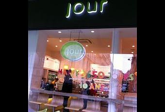 En passant boulevard Haussmann, j'ai été attirée par JOUR, une autre enseigne de restaurant de spécialités légères et de produits bio qui a pour spécialité les salades "sur mesure" à composer soi-même. Un univers de pureté popur convives qui veulent manger vite et bio.