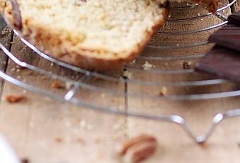 1- Divisez la pâte en cinq et placez-les côte à côté dans un moule à cake. Placez les cinq noix de pécan en les enfonçant légèrement dans la pâte.