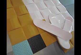 Ainsi, Adrien De Melo* a dessiné une série de carreaux tri-dimensionnels – intitulés respectivement Peak, Wave et Constellations – qui bousculent les codes traditionnels du carrelage céramique.