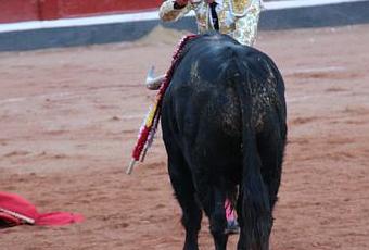 Pinchazo......Nouveau pinchazo.....La Puerta Grande s'éloigne. Alors David Mora joue un extraordinaire va-tout. Il jette sa muleta....et estoque a cuerpo limpio. Le toro tombe, l'oreille aussi.