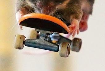 Bon, trêve de carabistouilles, aujourd'hui parlons d'une souris qui fait mieux du skate que beaucoup de gens dans la cabane (moi la première !). Elle fait des 360, des trucs de foufou sans les pattes, bref elle est aussi douée en skate que ratatouille dans sa cuisine. Je vous laisse voir :
