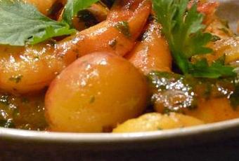 Nous allons en effet associer gambas au curry et mirabelles de Lorraine – dont c’est la pleine et très courte saison. J’adore le goût sucré et acidulé de ces petites billes arrivées à maturité, d’autant que cette variété de prunes se marient merveilleusement bien avec les gambas et autres crustacés. Et pour rendre ce plat plus gourmand encore, je l’ai nappé, lentement, délicatement, de miel pour obtenir une sauce onctueuse, à la robe ambrée.