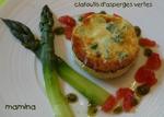 Comme la fraîcheur et la pluie sont revenues après un week-end magnifique, j'ai fait des petits clafoutis qui permettaient d'utiliser les asperges cuites pour le déjeuner.