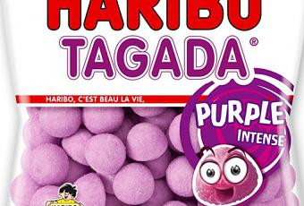 Après la fraise Tagada créée en 1969, puis la Tagada Pink à robe rose lancée 2010, la firme Haribo vient d’annoncer le lancement de la Tagada Purple, un nouveau bonbon, au goût framboise. La Tagada Purple a une couleur violette, et un goût framboise