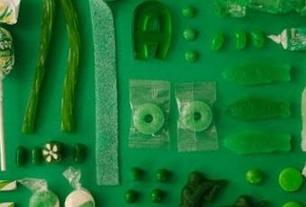 Vert, jaune, noir, orange, rose, rouge et même or, bleu ou vert : elle a déniché des sucreries de toutes les couleurs.