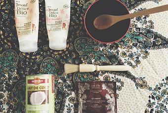 Timotei délice bio // Pinceau naturel Bloogmville // Lait de coco Alter Eco // Ghassoul Terre d’OC