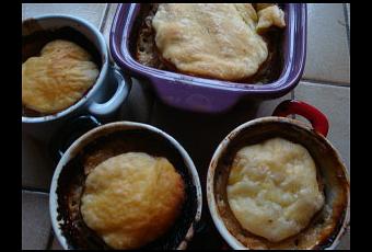 Au fond de ramequins individuels, répartissez la préparation au poulet.