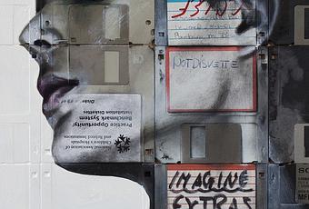 Cet artiste Londonien donne une nouvelle vie à cet objet des 80′s maintenant bien dépassé : une disquette avait une capacité de stockage de 1.40 Mo, ce qui est plutôt ridicule aujourd’hui !