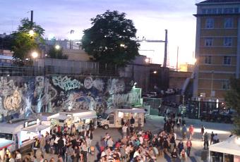 Ce week-end a eu lieu "Cuisines en Friche" à Marseille et nous avons passé deux journées extraordinaires en compagnie de chefs tous plus talentueux les uns que les autres, à goûter de petites merveilles. Le vendredi soir une dizaine de camions de pizza étaient stationnés dans la grande cour. Dans ces camions se trouvaient un artisan pizzaïolo et un chef marseillais qui proposaient pour 10€ une pizza un peu originale et surtout à base d’excellents produits. Difficile de choisir mais nous avons finalement opté pour celle de Christian Ernst "Pizza au travers de veau confit, crème de giroles et croûte de comté" et celle de Sylvain Depuichaffray aux fruits de saison (alors là j’étais comme une groupie, vous connaissez ma passion pour les douceurs de ce grand pâtissier).