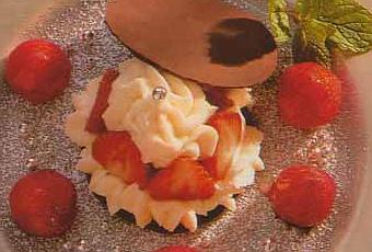 150 g de chocolat amer, 500 g de fraises, 20 cl de crème fleurette, 2 feuilles de gélatine,