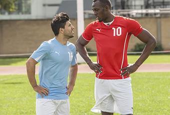 Puma, sponsor principal de Bolt ainsi que de l’Argentin, a eu l’idée de réunir ses deux têtes de gondoles afin de communiquer sur le derby de Manchester qui aura lieu dimanche prochain.