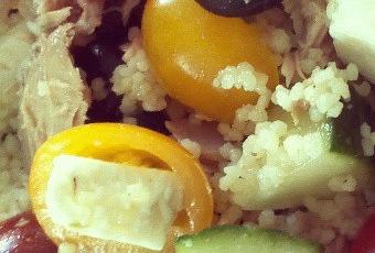 Préparation: 1. Couscous : cuire selon les indications de la boîte puis laisser refroidir. 2. Mélanger tous les légumes, le thon, jus de citron, origan et l'huile d'olive ensemble, puis mélanger avec le couscous.
