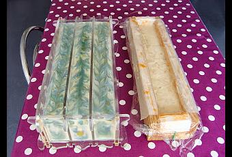 L'ouverture de ma savonnerie approche à grands pas... Je suis donc en pleine production.Vous avez sur la photo un aperçu de deux des savons de ma gamme (encore en moule, on ne se rend pas bien compte, je sais, mais que voulez vous je garde le mystère pour l'ouverture...).A gauche c'est un moule saponine, le moule karité... de quoi faire 60 savons de 100g... Un moule tout en transparence et dans lequel les savons se démoulent tout seul...A droite c'est ancien moule de la savonnerie de Chauvirey, un peu de l'âme de cette ancienne savonnerie continuera donc à vivre chez Bulle de m'Alice puisque la savonnière m'a très gentiment fait don de ses moules à la fermeture... de quoi faire 40 savons de 30g...Mais Bulle de m'Alice ce ne sera pas que des savons... D'autres cosmétiques sont prévus.