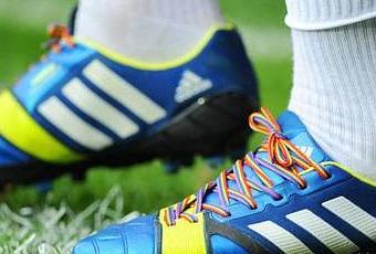 Stonewall, l’association anglaise de défense des droits des homosexuels, a invité les près de 5.000 footballeurs professionnels d’Angleterre à porter des lacets arc-en-ciel en signe de solidarité avec les homosexuels : »Les lacets ont été distribués à chaque joueur des 134 clubs pros du Royaume-Uni et ils sont invités à les porter lors des matches du week-end« .