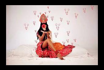 Vagina est plus qu’une œuvre, c’est un concept. C’est un prétexte d’étude des formes d’expression plastique et esthétique permettant de traiter de la domination dans le cadre de la relation homme-femme. Cette étude m’a projetée initialement, à travers une installation, dans une chambre à coucher prise comme lieu d’expression « euphémysé » de la violence de cette domination. Cette installation, a évolué plastiquement au gré des espaces d’exposition qu’elle a investi, galerie (T&T Guadeloupe), chambre d’hôtel (Pool Art Fair, New York), médiathèque (Art Bémao, médiathèque Paul Mado). Ainsi, ces expositions en Guadeloupe ou à New York n’ont partagé que quelques éléments qui me semblaient être des axes forts et essentiels. Cette étude m’a amenée en parallèle, par le biais de la photographie, à personnifier cette violence à travers une créature dotée d’une bouche rouge démesurée. Oui, tout mon travail actuel est mû par des réflexions inscrites dans le cadre de Vagina. J’ai le sentiment d’avoir, devant moi, un immense livre blanc dont je n’ai, pour le moment utilisé que quelques pages.