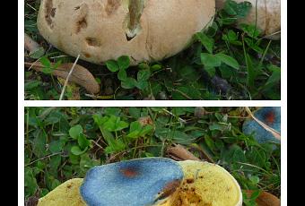 Le fait de devenir bleu n’est pas à lui seul un signe de non-comestibilité. Les deux critères sont d’ailleurs totalement indépendants : certains bolets virent au bleu et restent tout à fait agréables au goût et anodins pour les fonctions digestives de l’humain moyen. C’est ainsi le cas du bolet bai (2 fourchettes dans ma bible des champignons), mais son bleuissement se produit un peu après la cassure et non aussitôt.